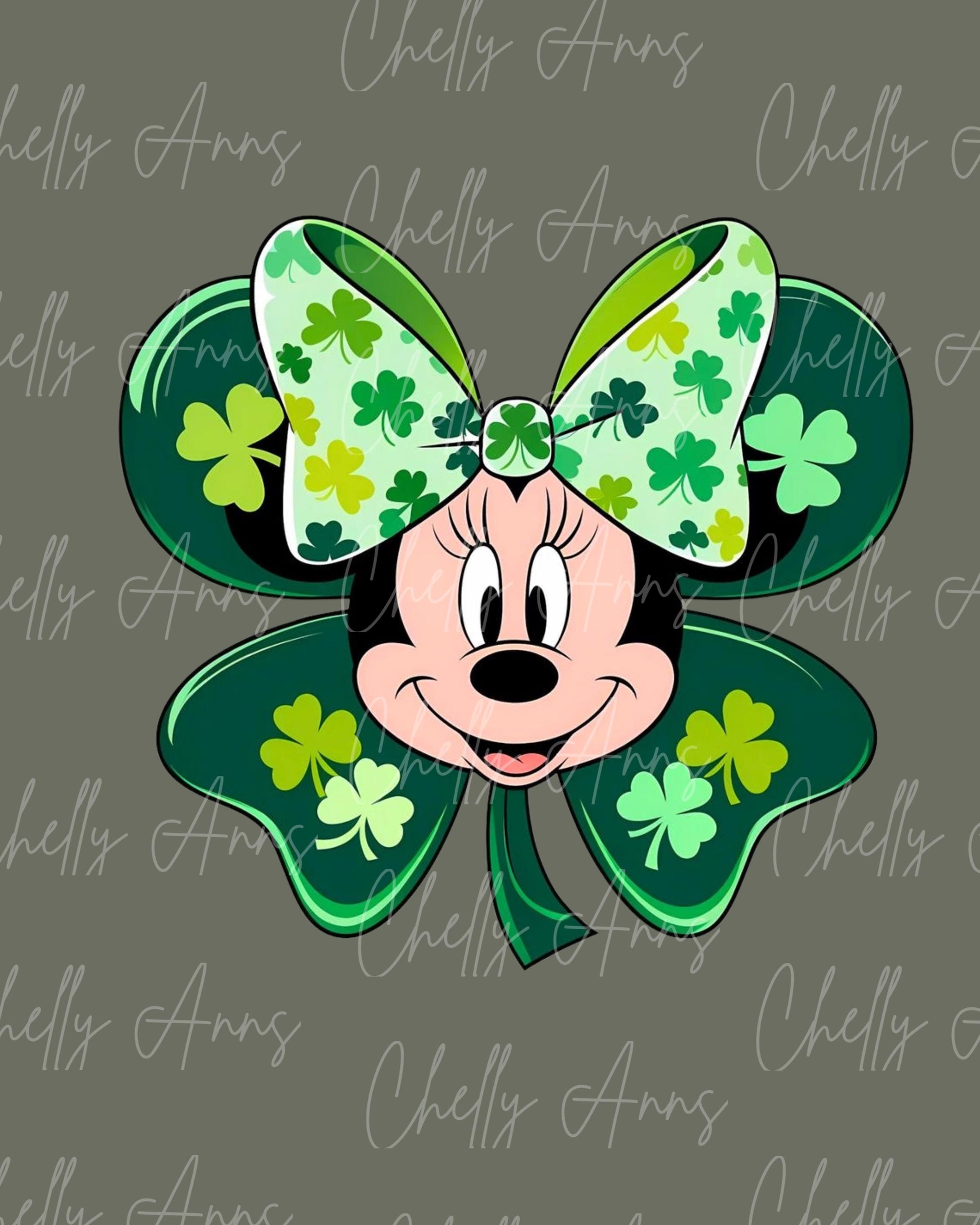 PNG Clover Mouse St. Patricks | St. Patrick’s Day PNG Design| Mouse St.Patrick’s Day | Minnie PNG | Kids St. Patrick’s Design| Shamrock Png|