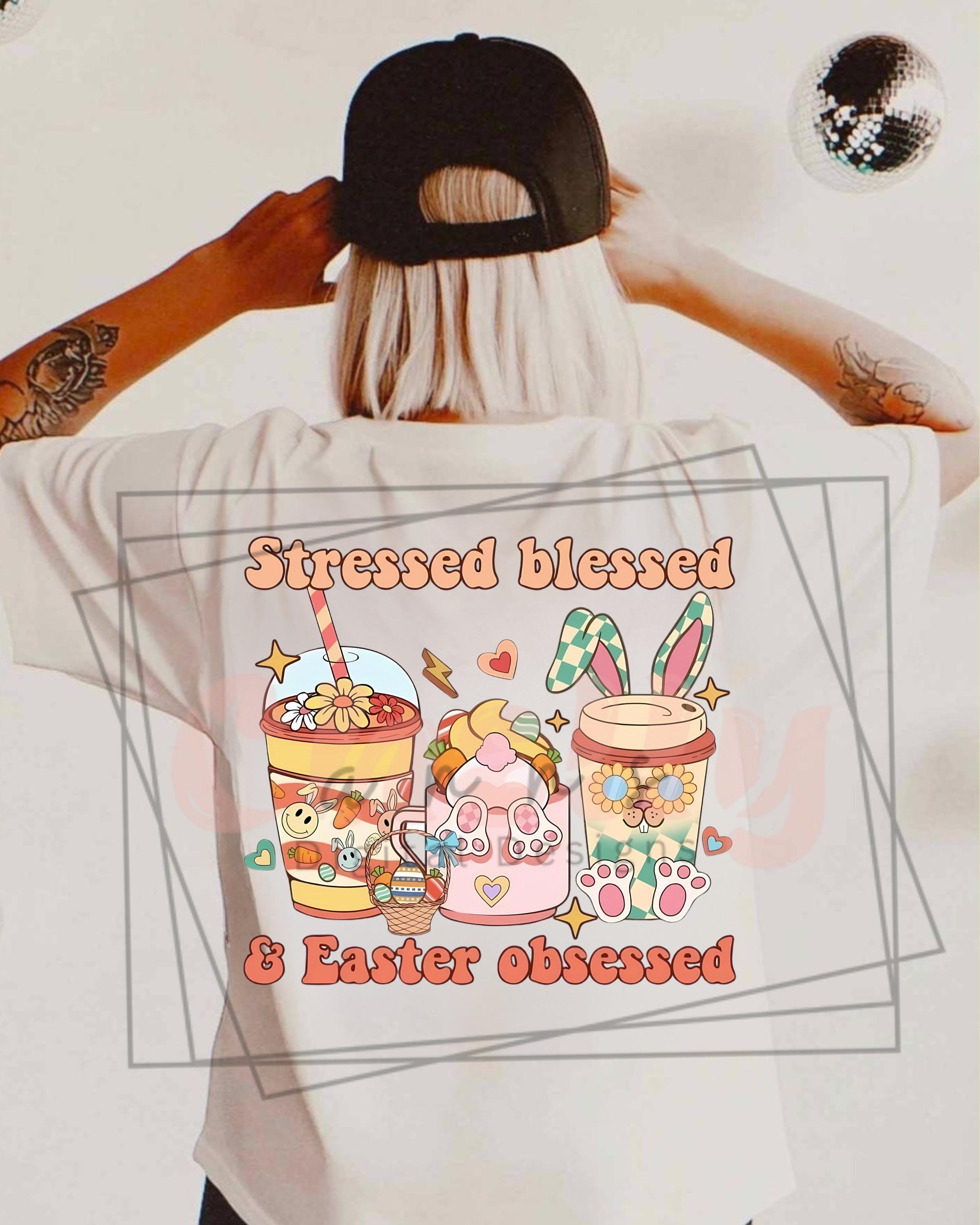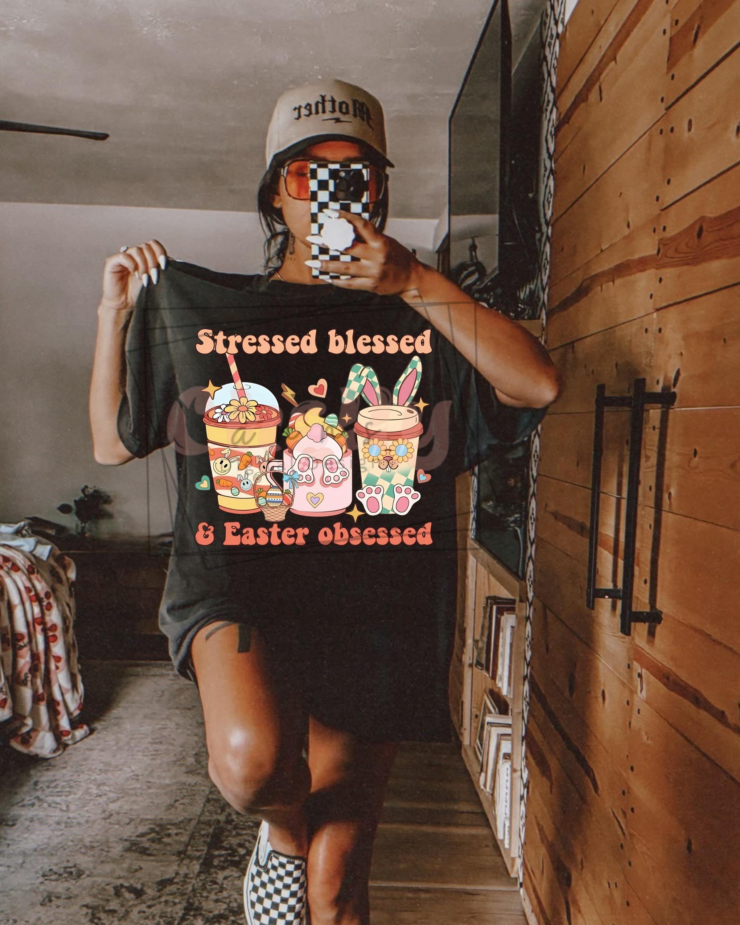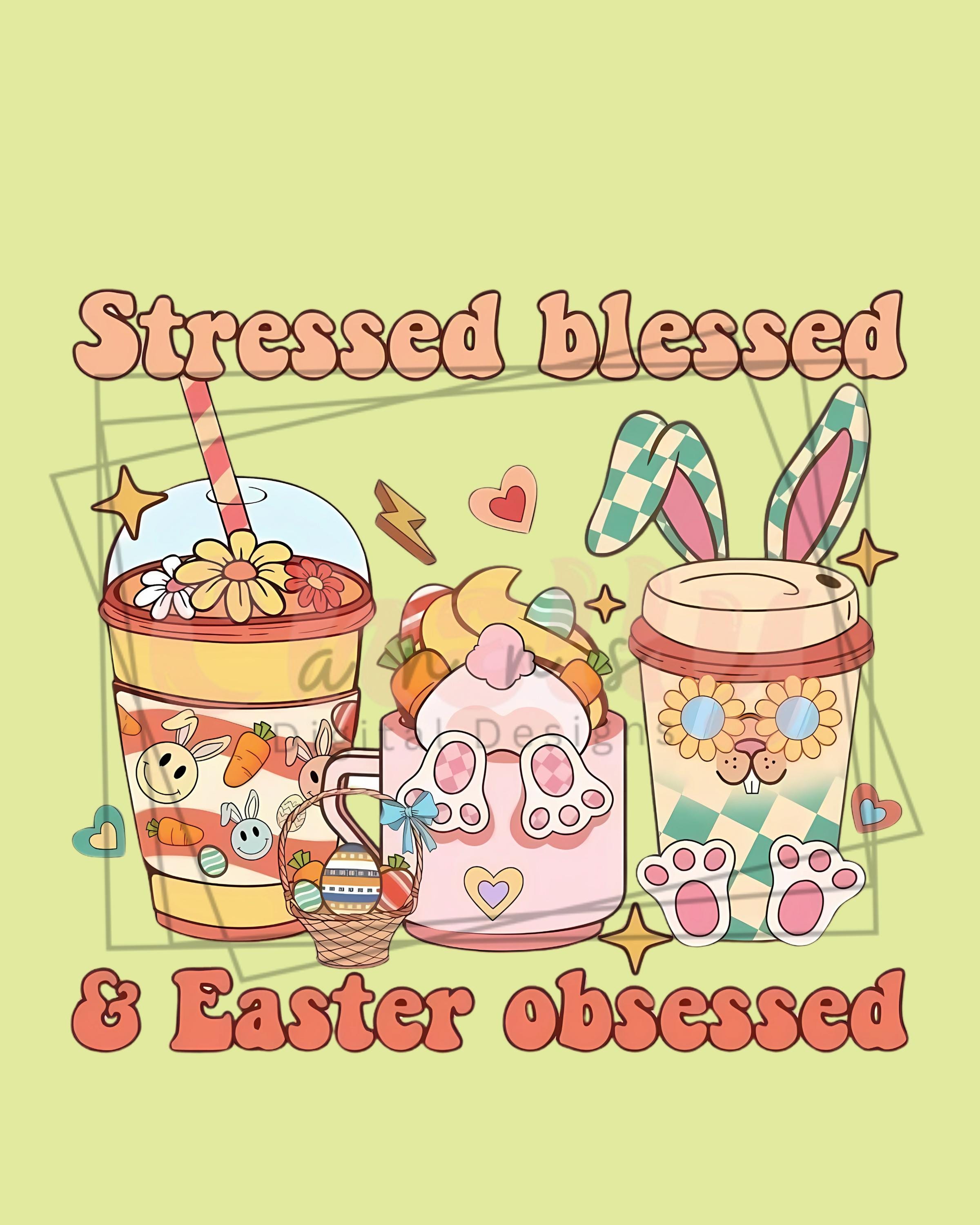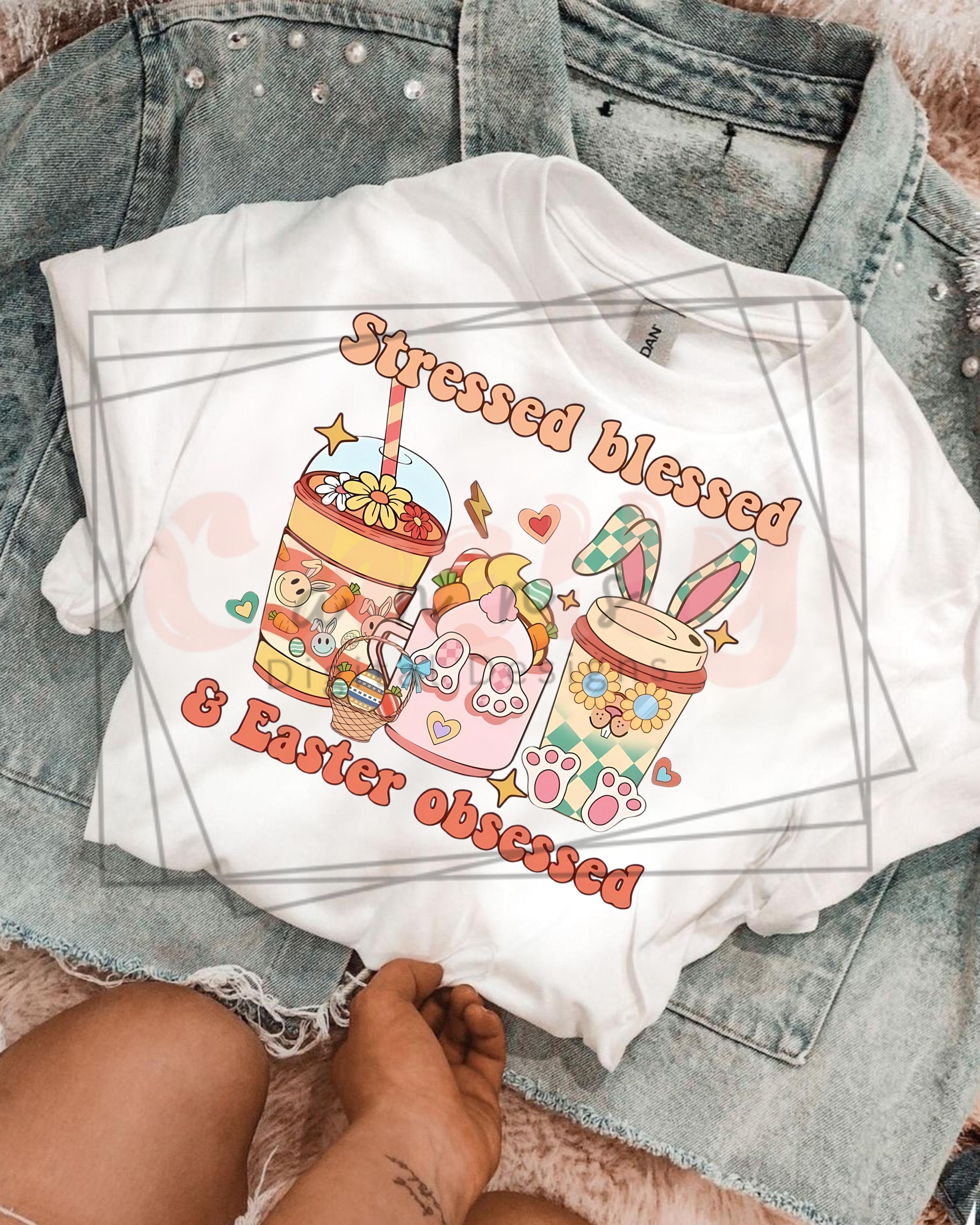 Stressed Blessed and Easter Obssesed PNG , Cute Easter Design, holiday pngs for moms, Rabbit PNGs , Spring Color Designs, Popular Tshirt DIY