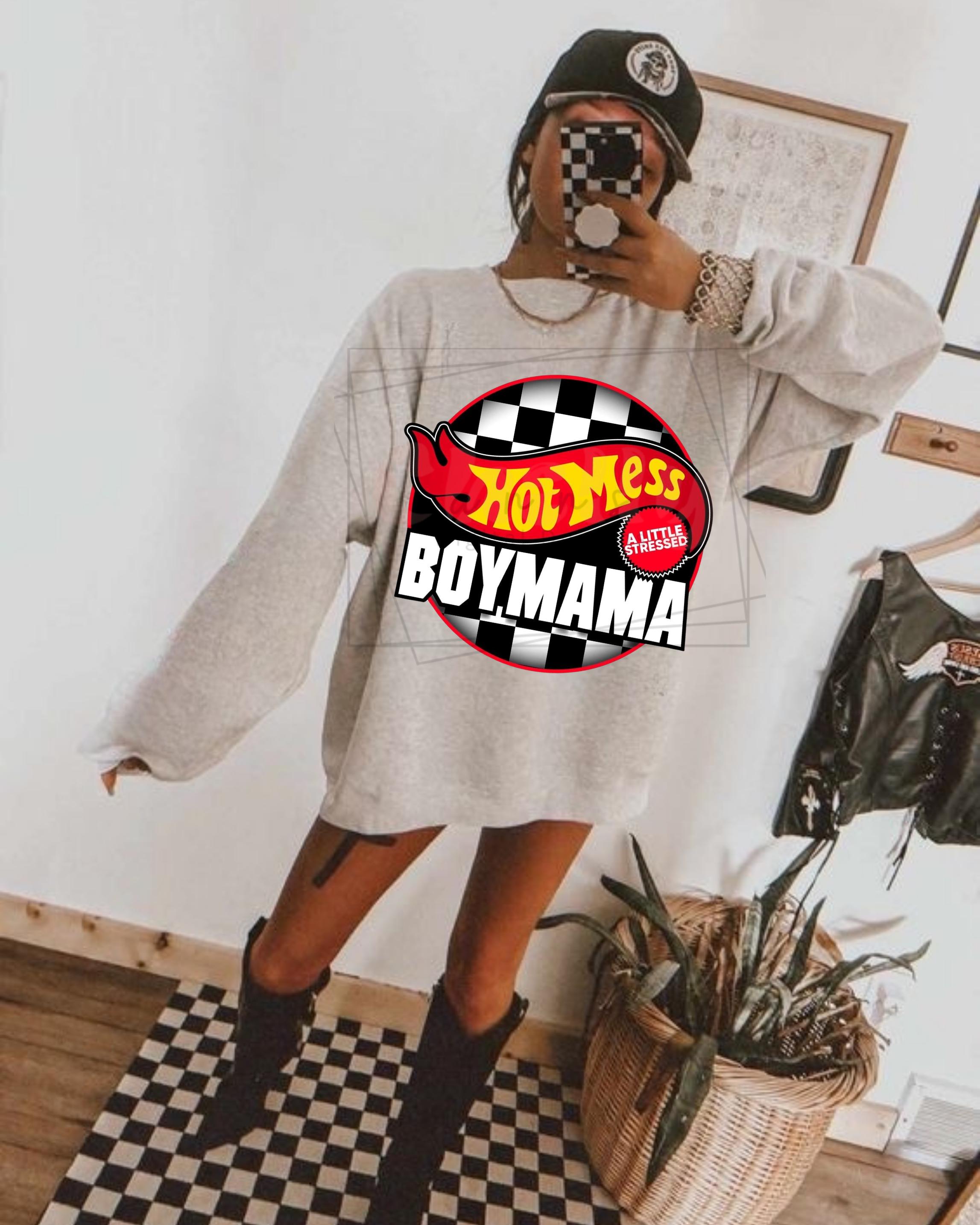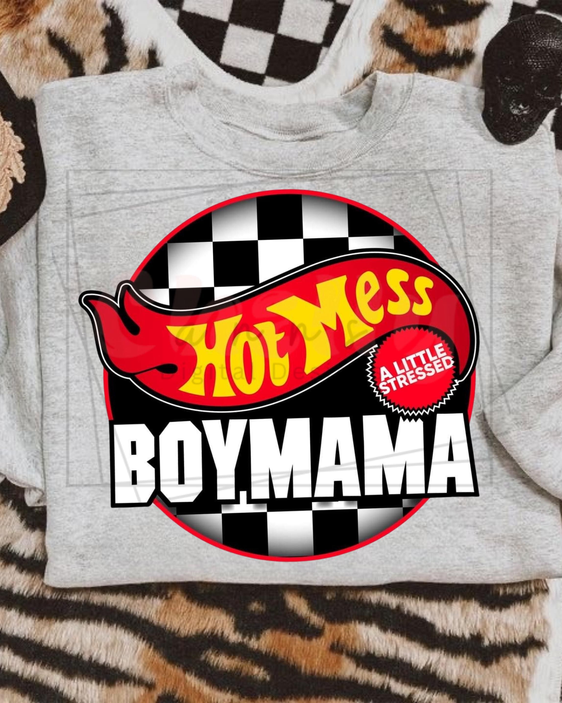 Hot Mess Boy Mama PNG, Print DIY Designs, Cute Checkered Design, Unique Sublimation , Instant Download, Mama Designs, Car Racing Design