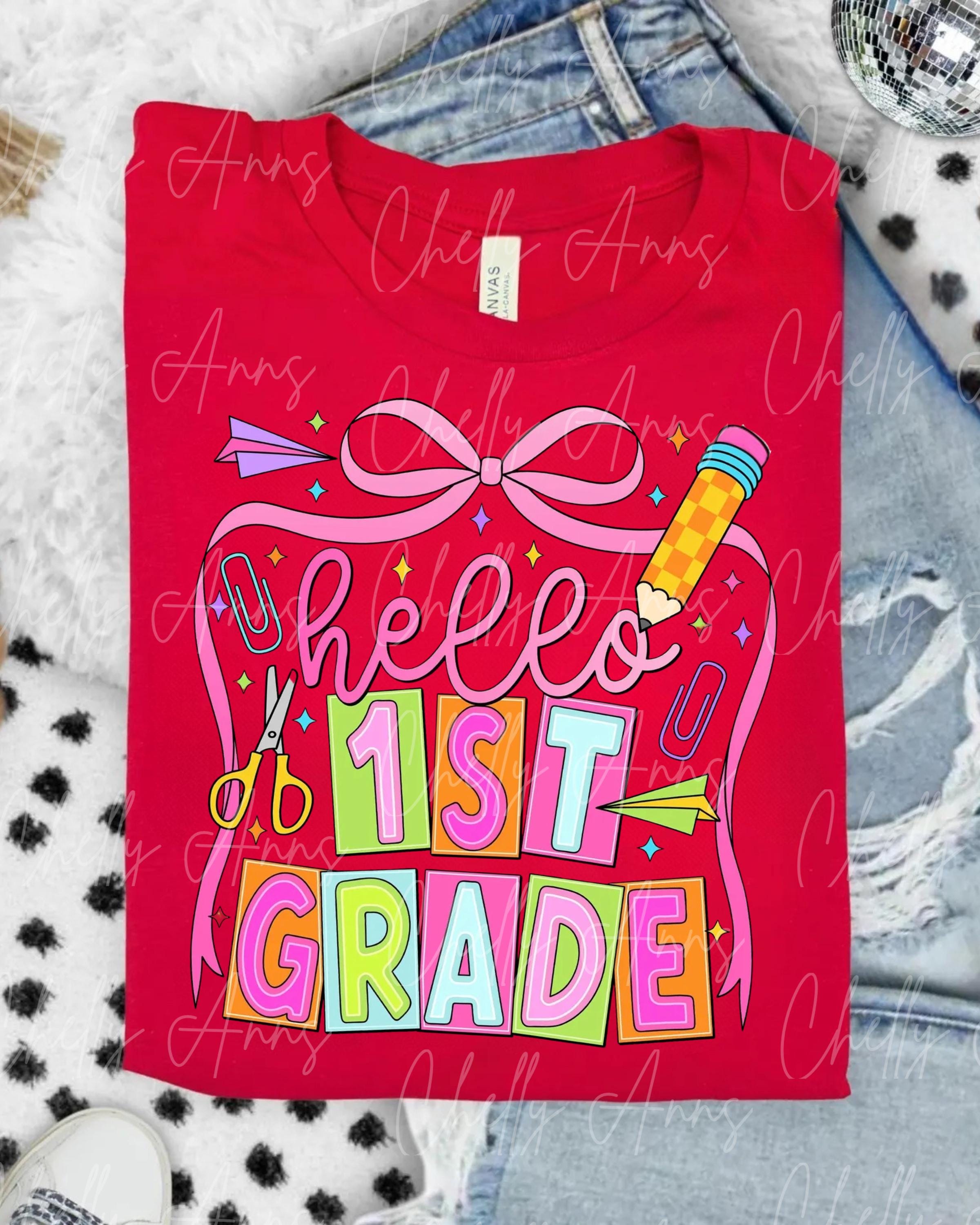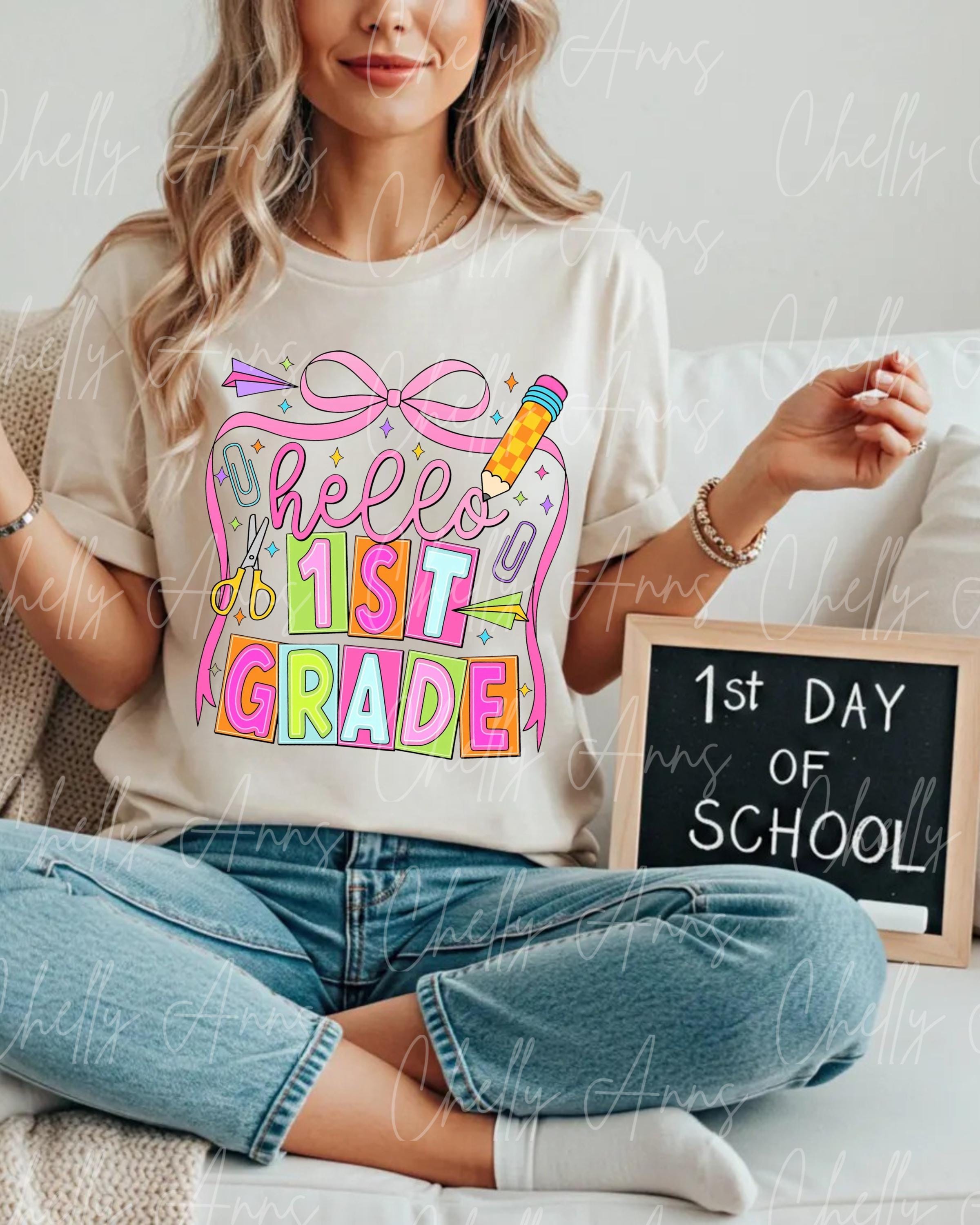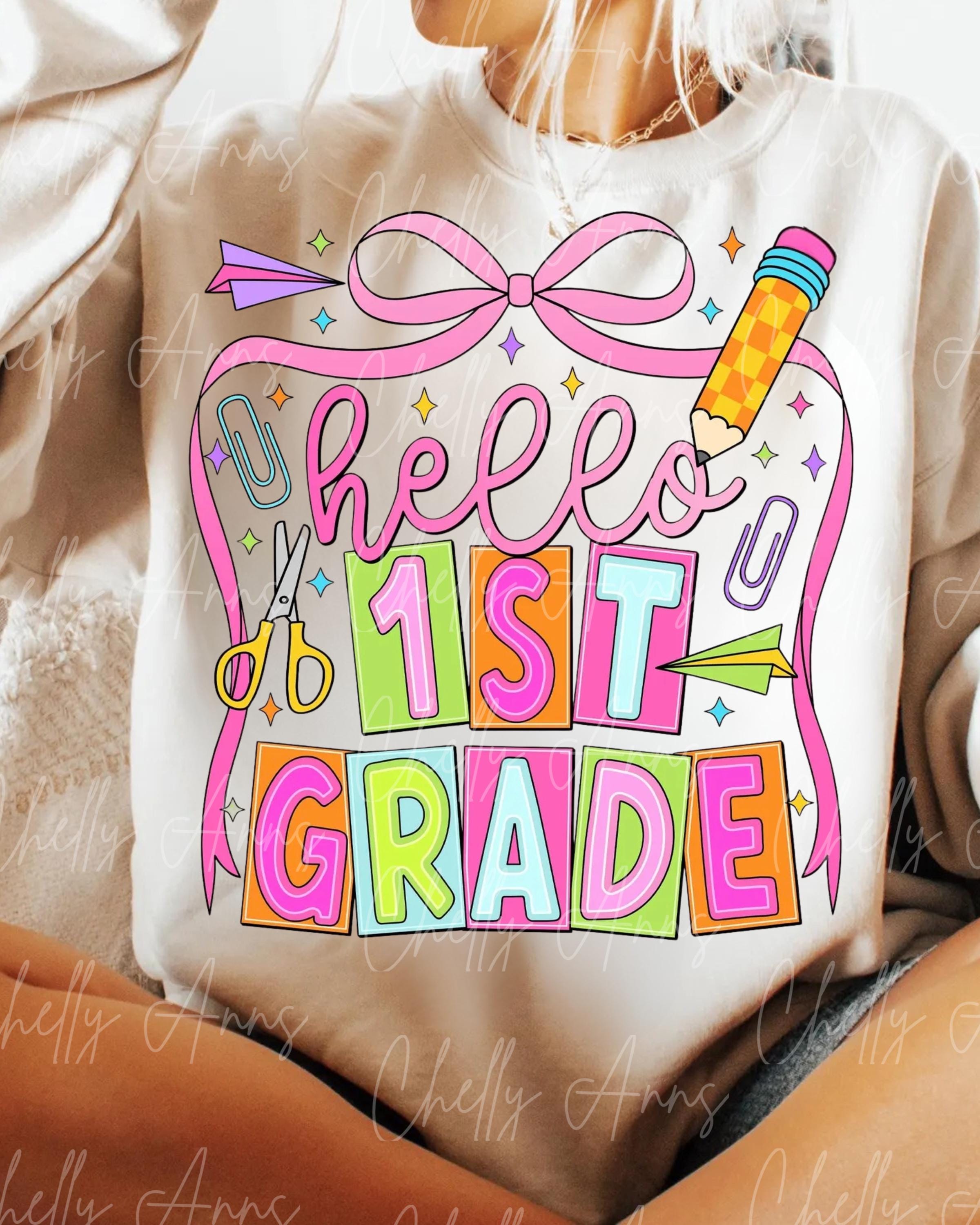 Hello First Grade PNG: Back To School Design (Digital Download