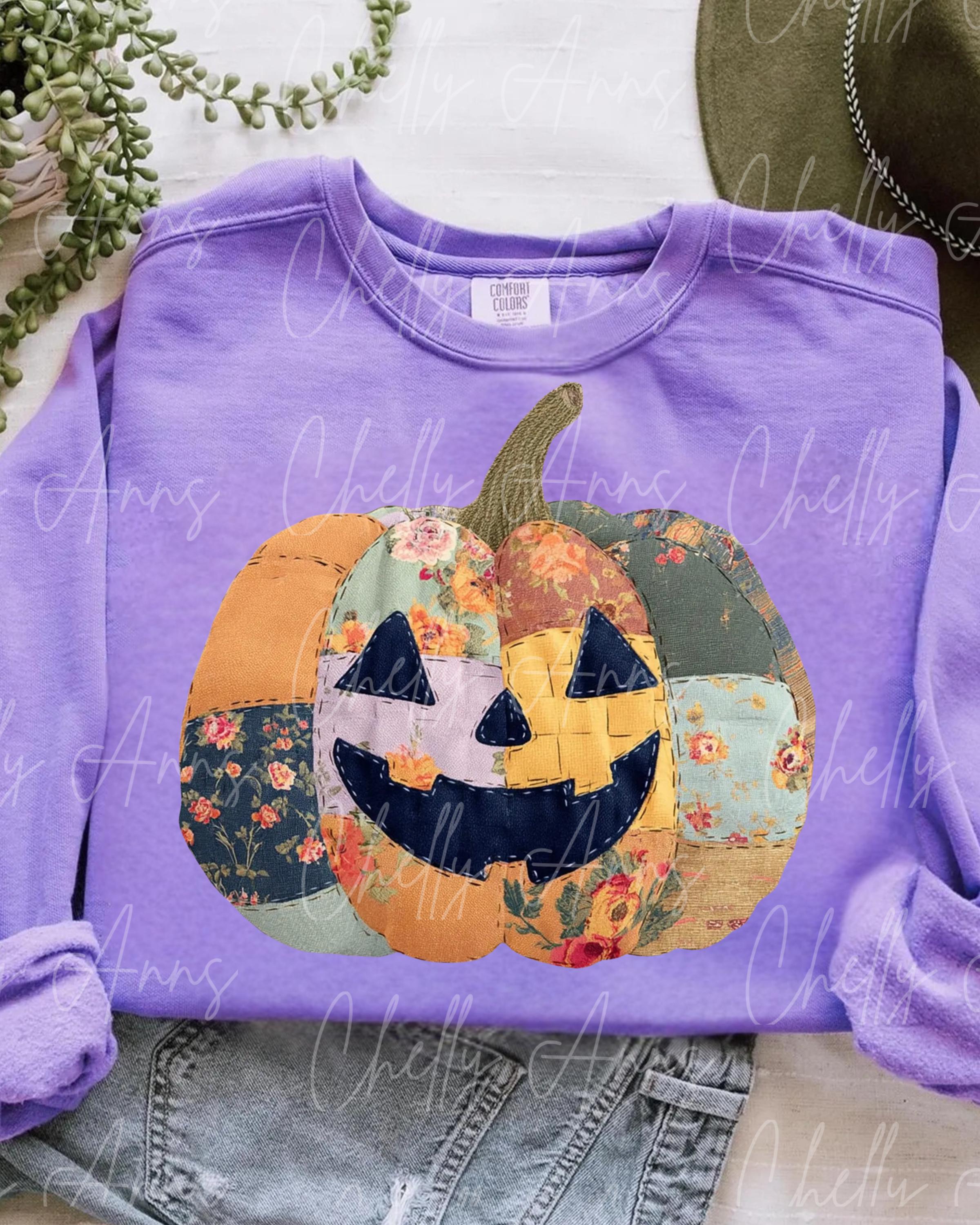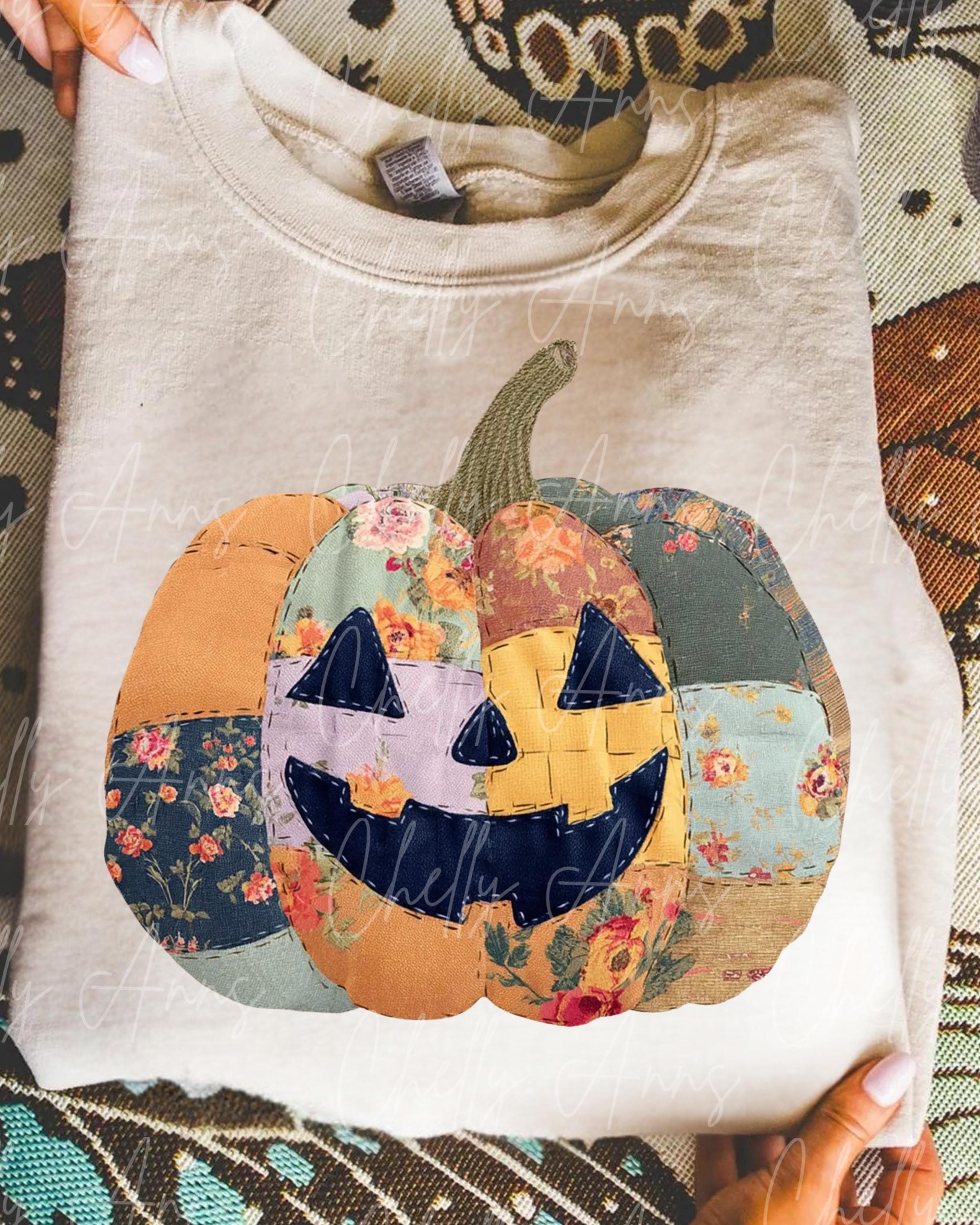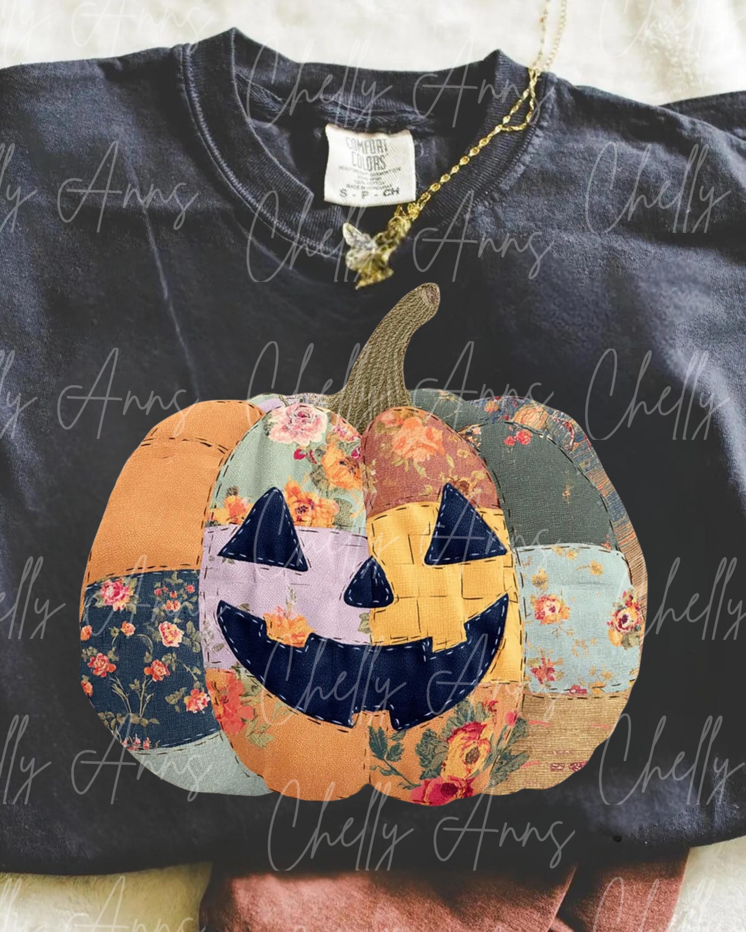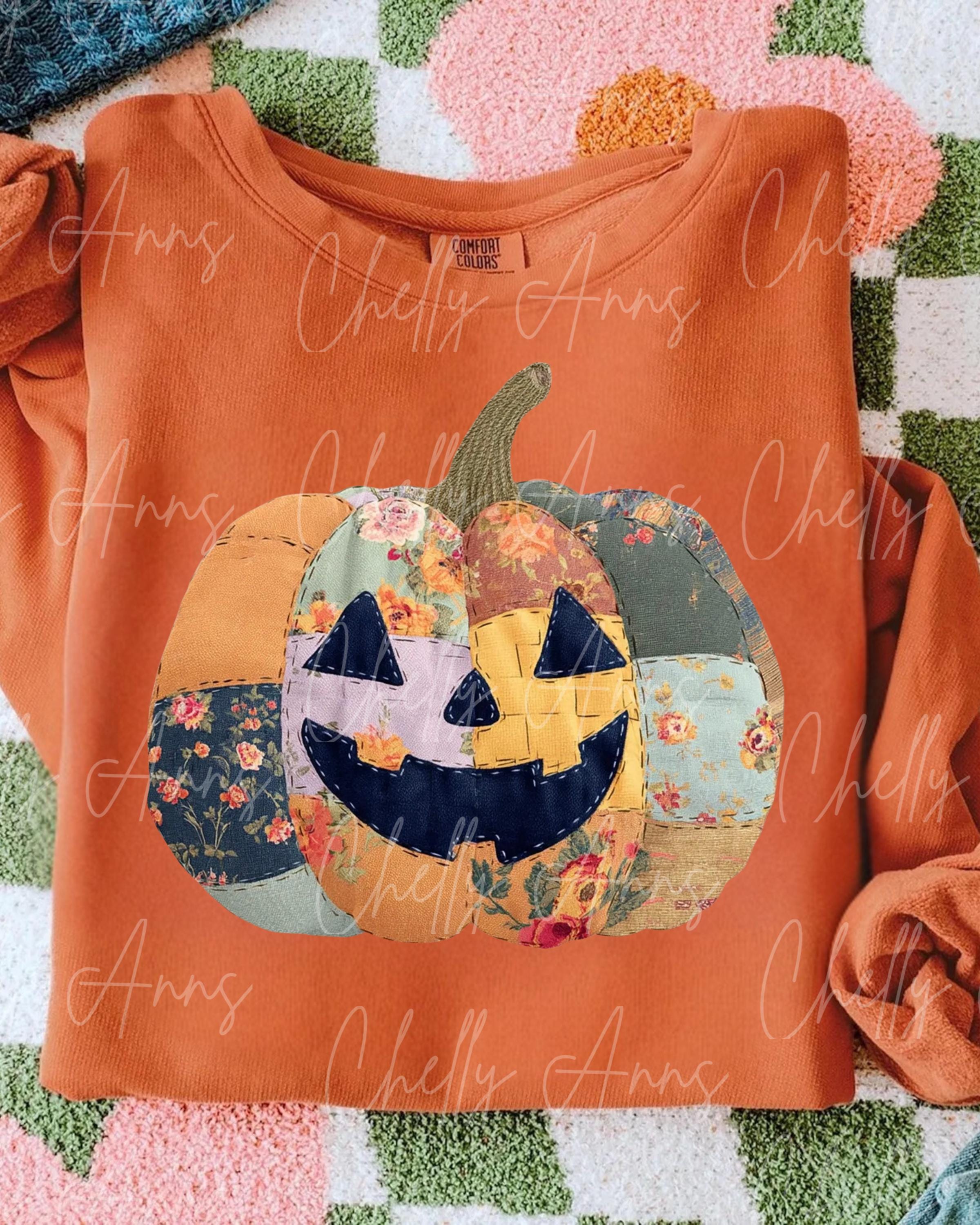 Quilted Pumpkin PNG, Cute Spooky PNG , Halloween Designs, For the Girls, Cute Retro Halloween PNG, Bright Spooky Design, Fall Brown Design