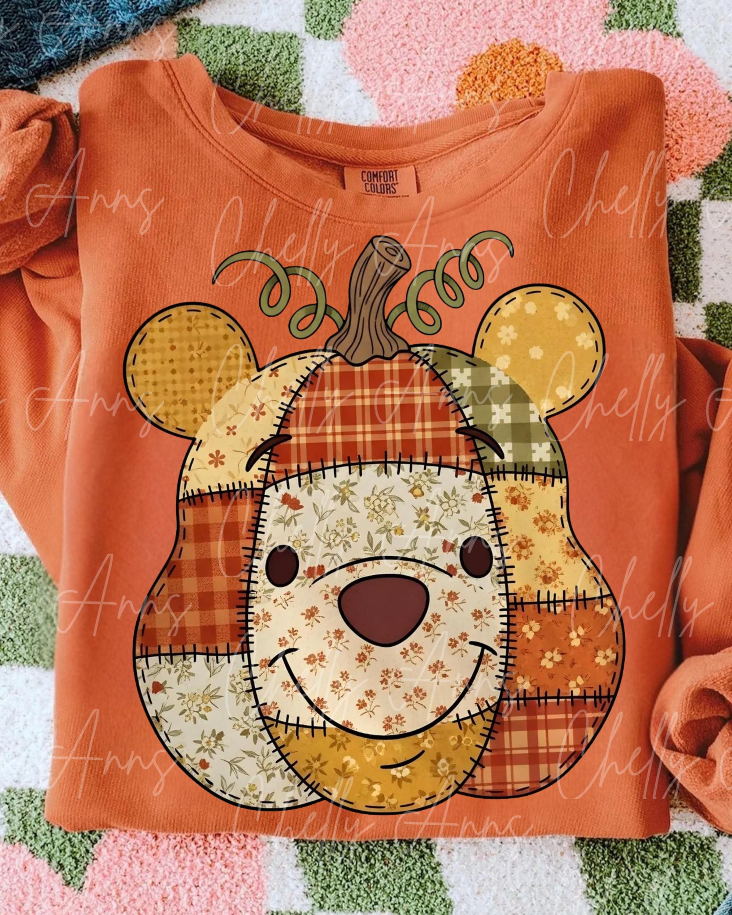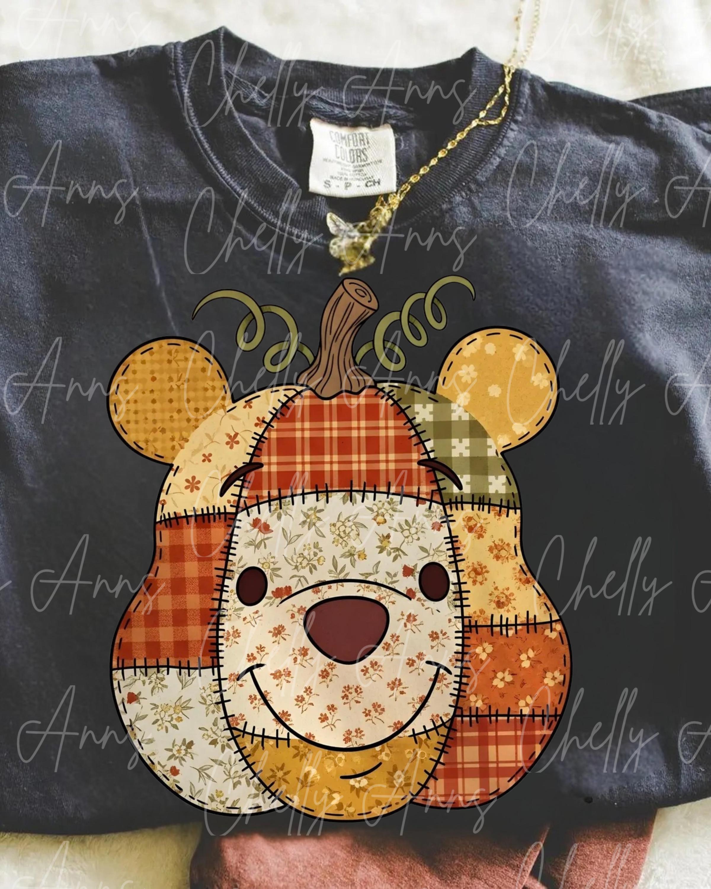 Cute Bear Quilted PNG, Cute Spooky PNG , Halloween Designs, For the Girls, Cute Retro Halloween PNG, Bright Spooky Design, Fall Design