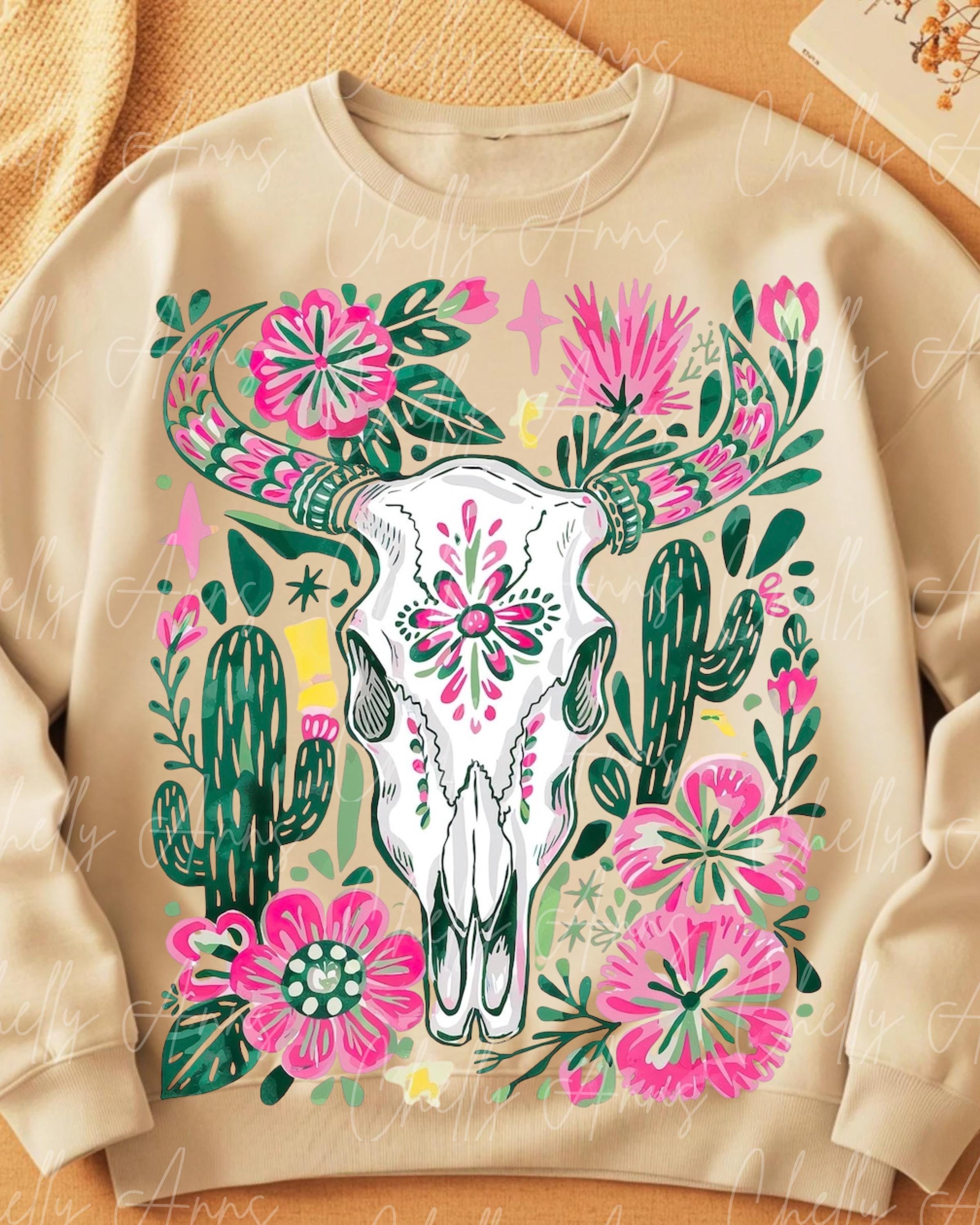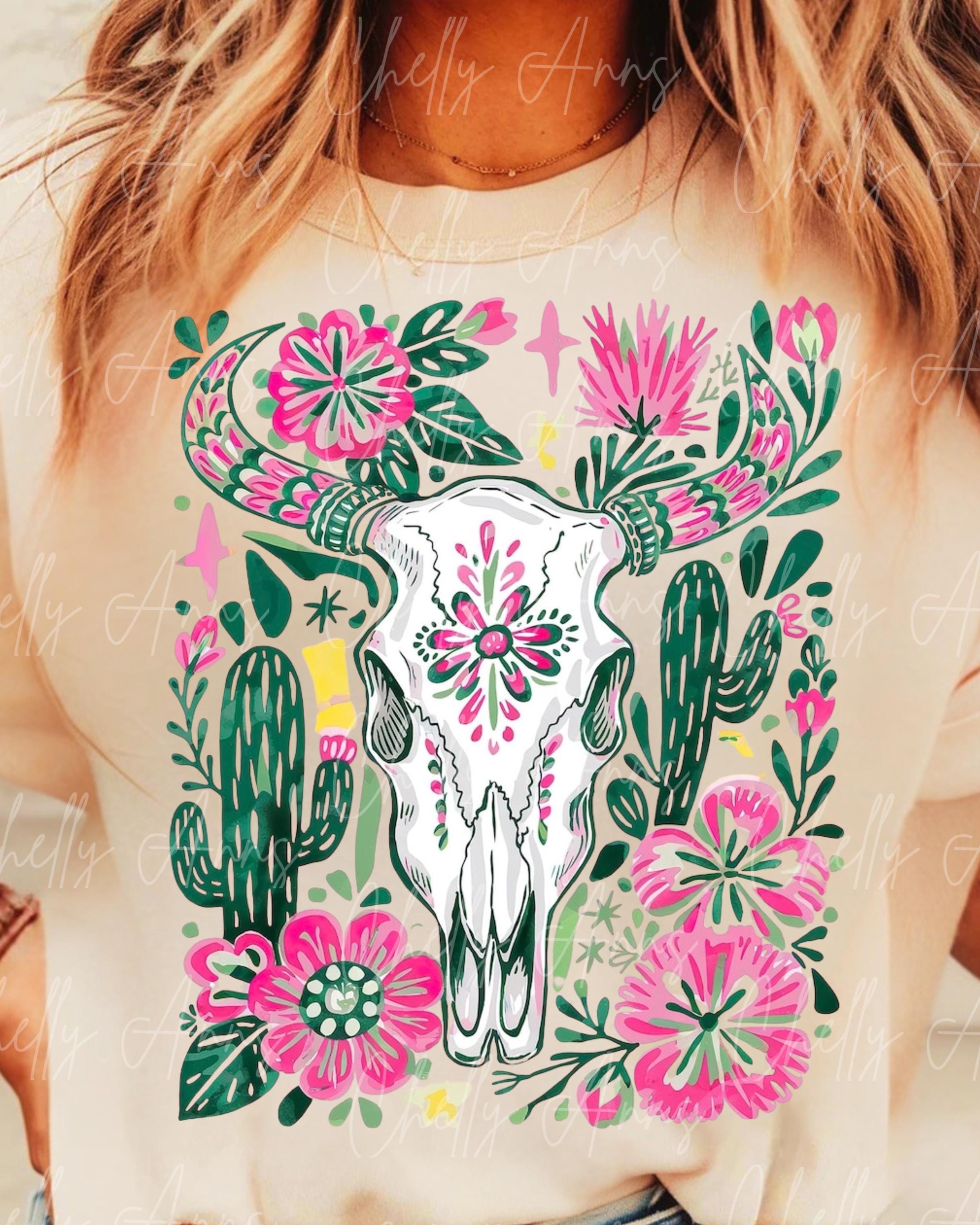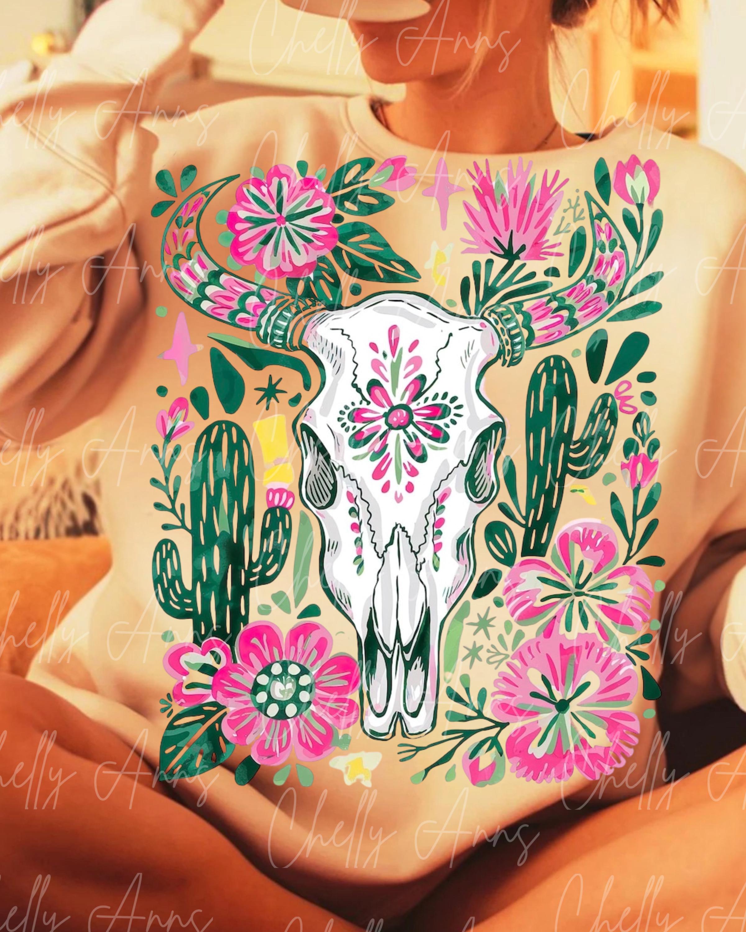 Floral Carcus PNG, Plant Design, Popular Floral Bright Western PNG, Western Carcus Design, Trendy Skull Floral Sublimation, Instant Download